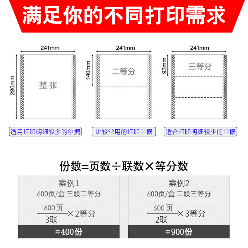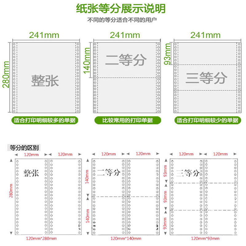 针式电脑打印纸三联二三等分二联三一二等分两联241-3联2等分三联单四联五六联发票清单送货打印机票据专用纸