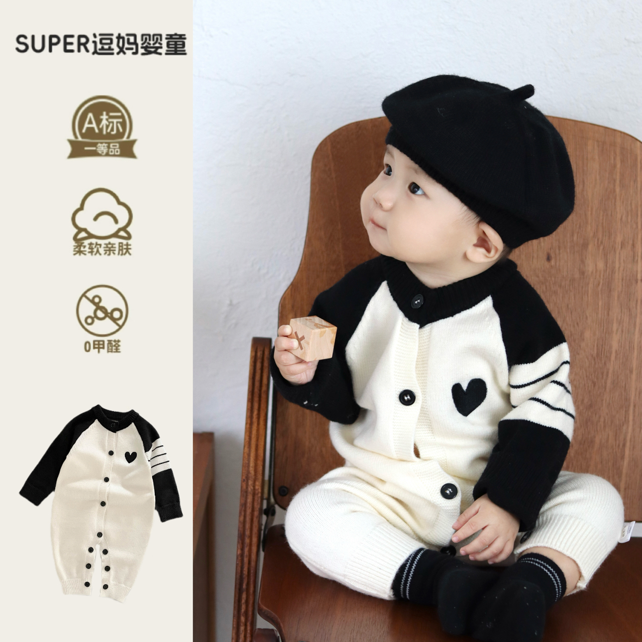 婴儿衣服春装新生男宝宝连体衣满月百天冬季绅士哈衣针织毛衣纯棉