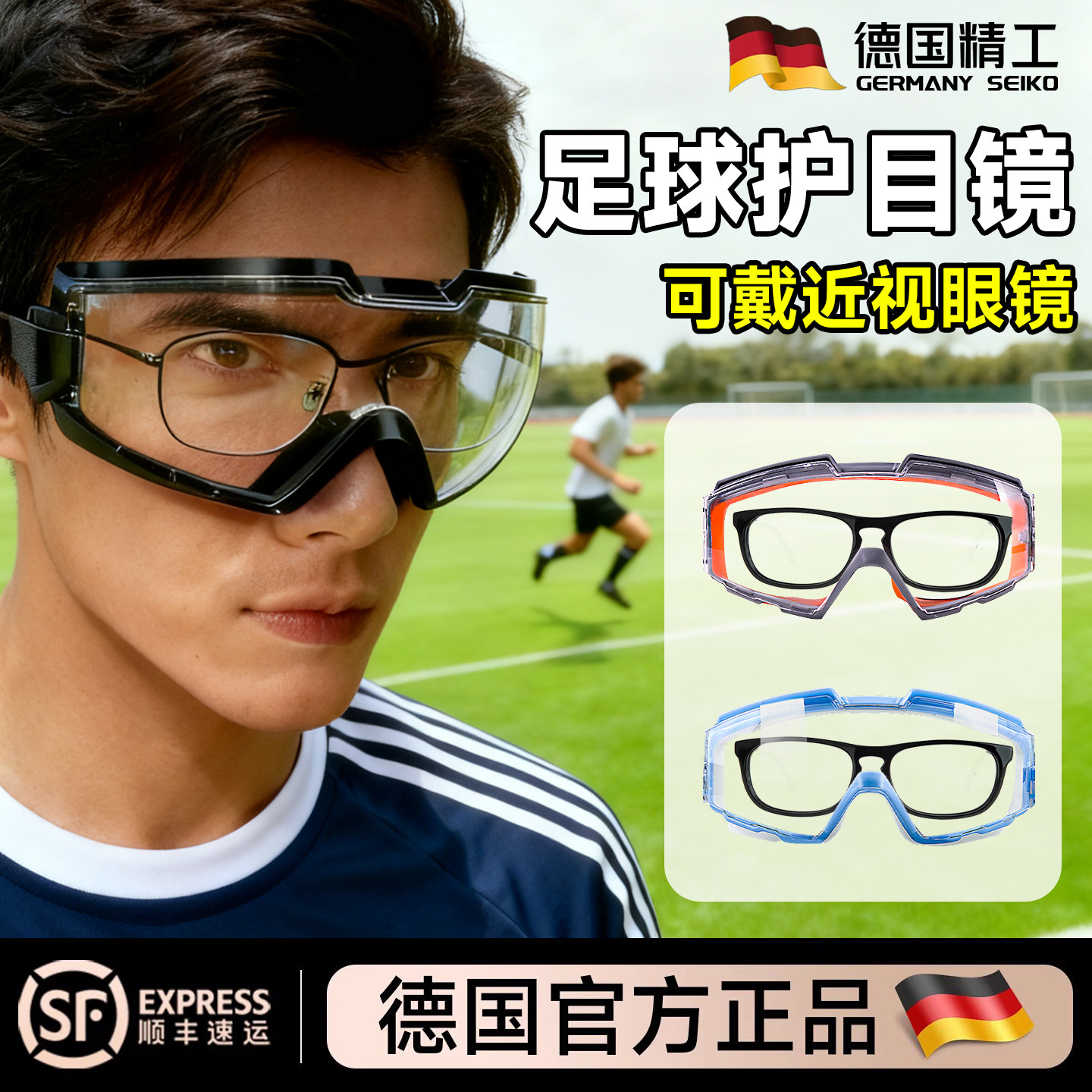 德国足球护目镜可戴眼镜专业运动近视篮球踢足球防护眼睛防风户外