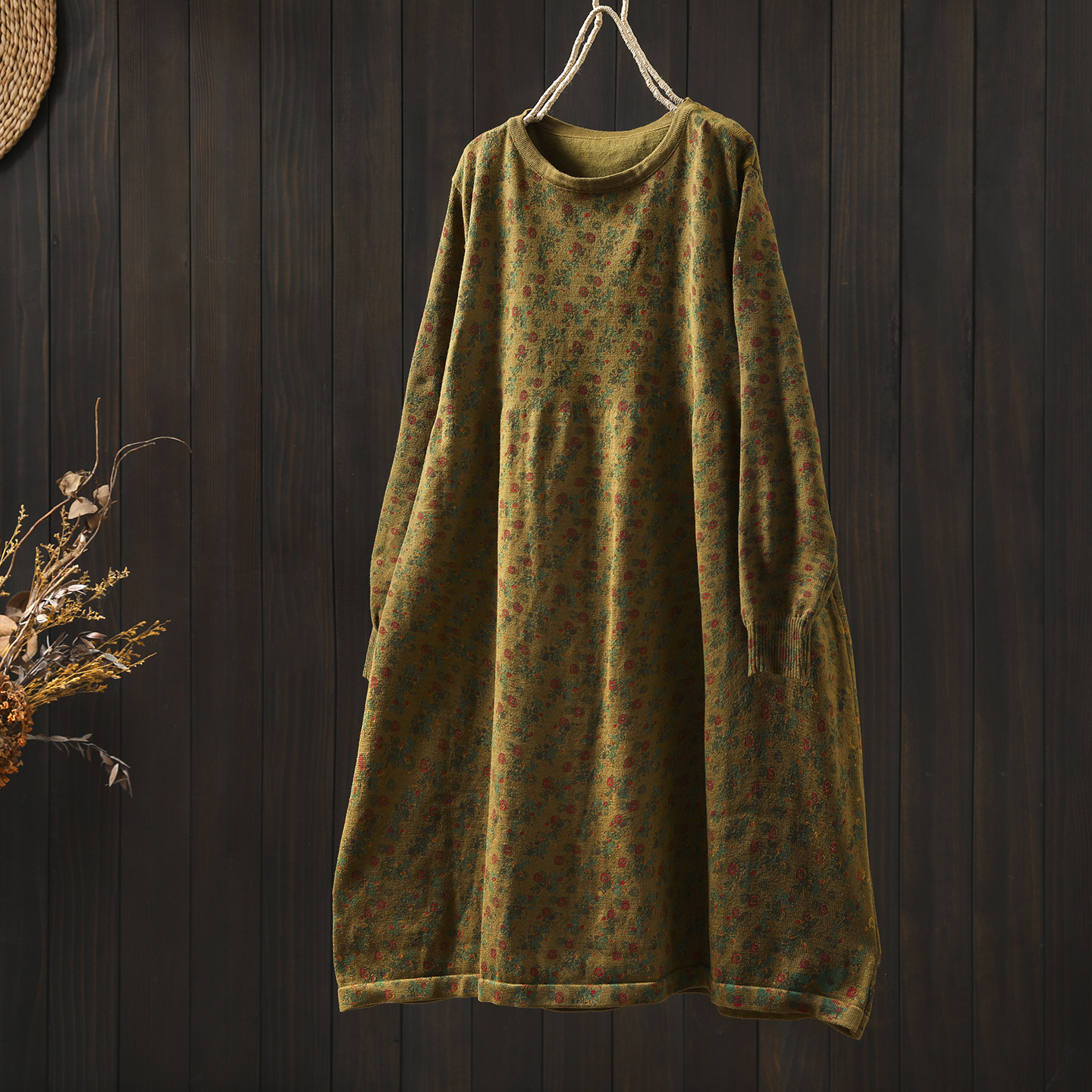 复古碎花女士连衣裙2025新款秋冬针织慵懒风宽松文艺气质a字长裙