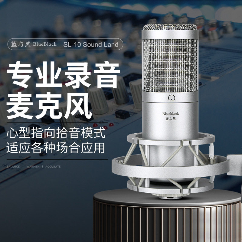 蓝与黑SL10麦克风录音唱歌声卡直播48V电容大振膜话筒k歌喊麦套装