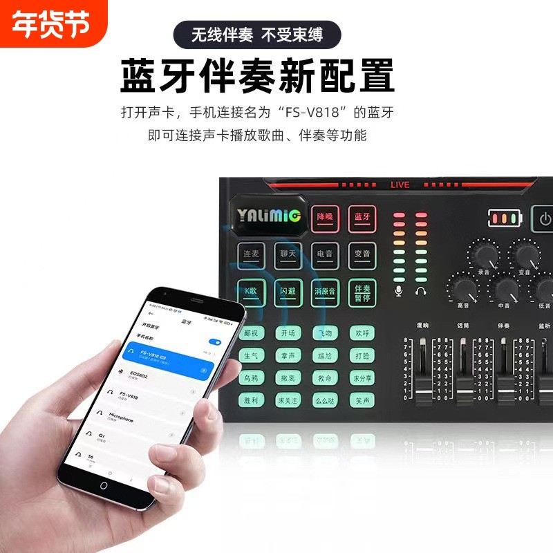 V9声卡套装话筒录音唱歌手机喊麦K歌套装全套通用支架YK歌设备新