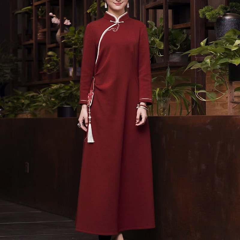 如意风改良奥黛旗袍连衣裙秋季新款复古中国风高级气质长裙26R002