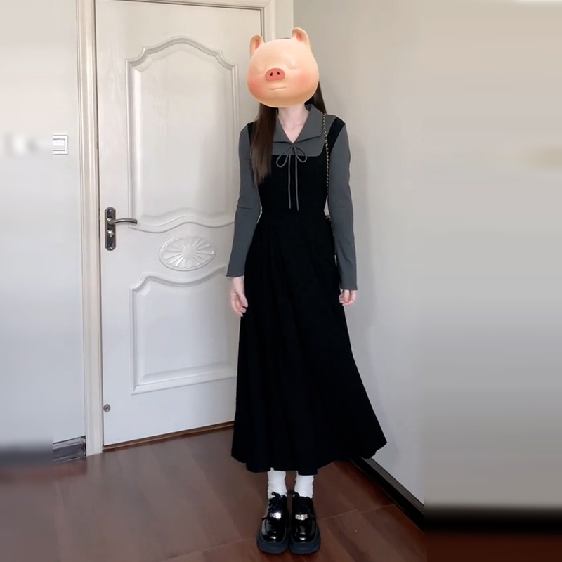 连衣裙春款2025秋冬季新款黑色拼接长袖显瘦裙子网红洋气炸街女装