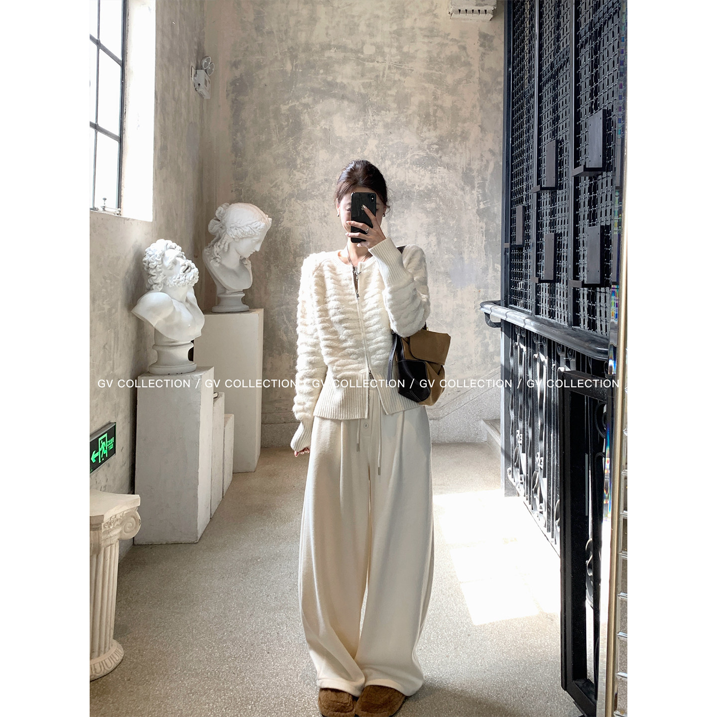 GV大白哥 淡人日常 立体肌理双头拉链圆领针织开衫冬季新款上衣女