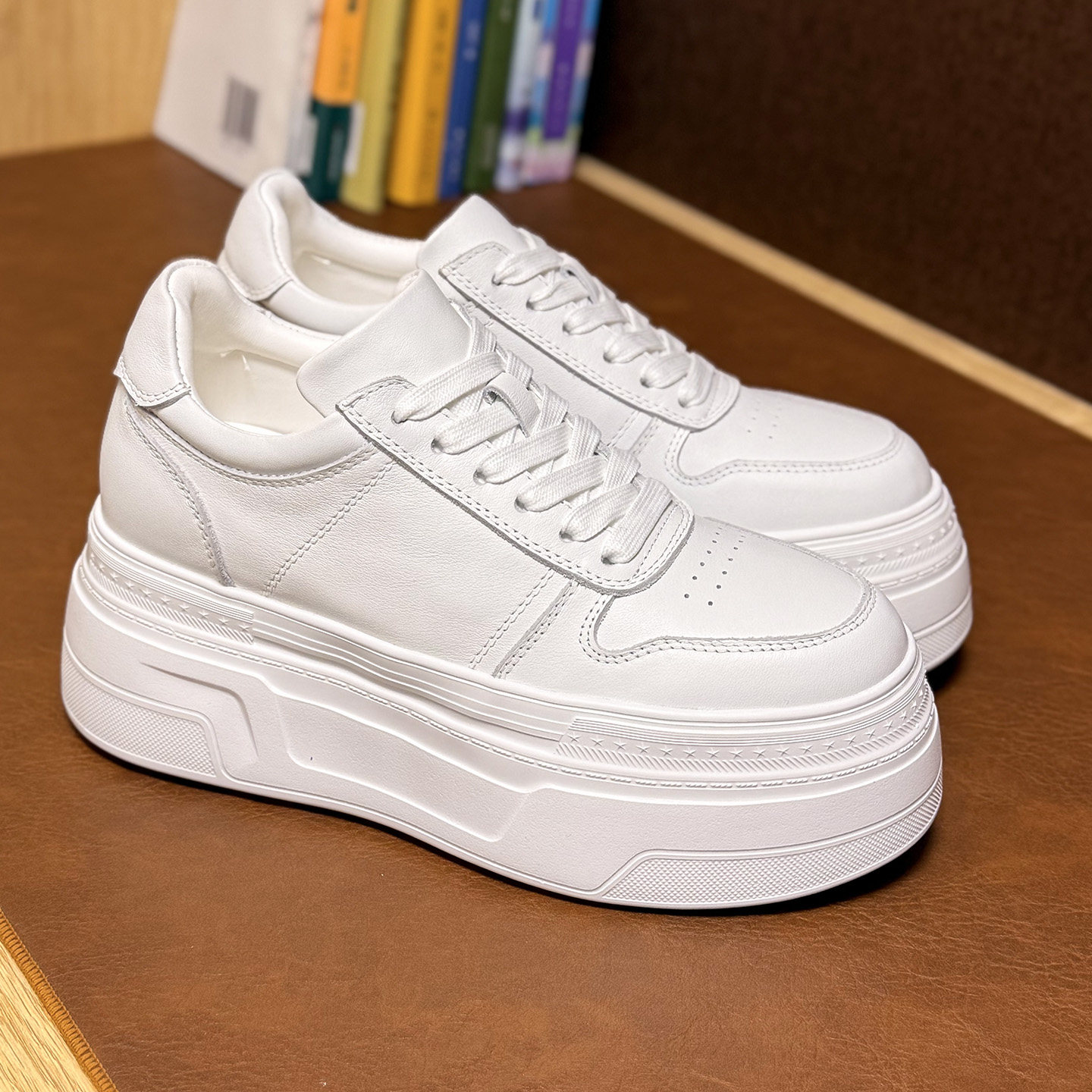 轻便松糕厚底内增高8-10cm女款2026新款春款真皮显脚小个子小白鞋