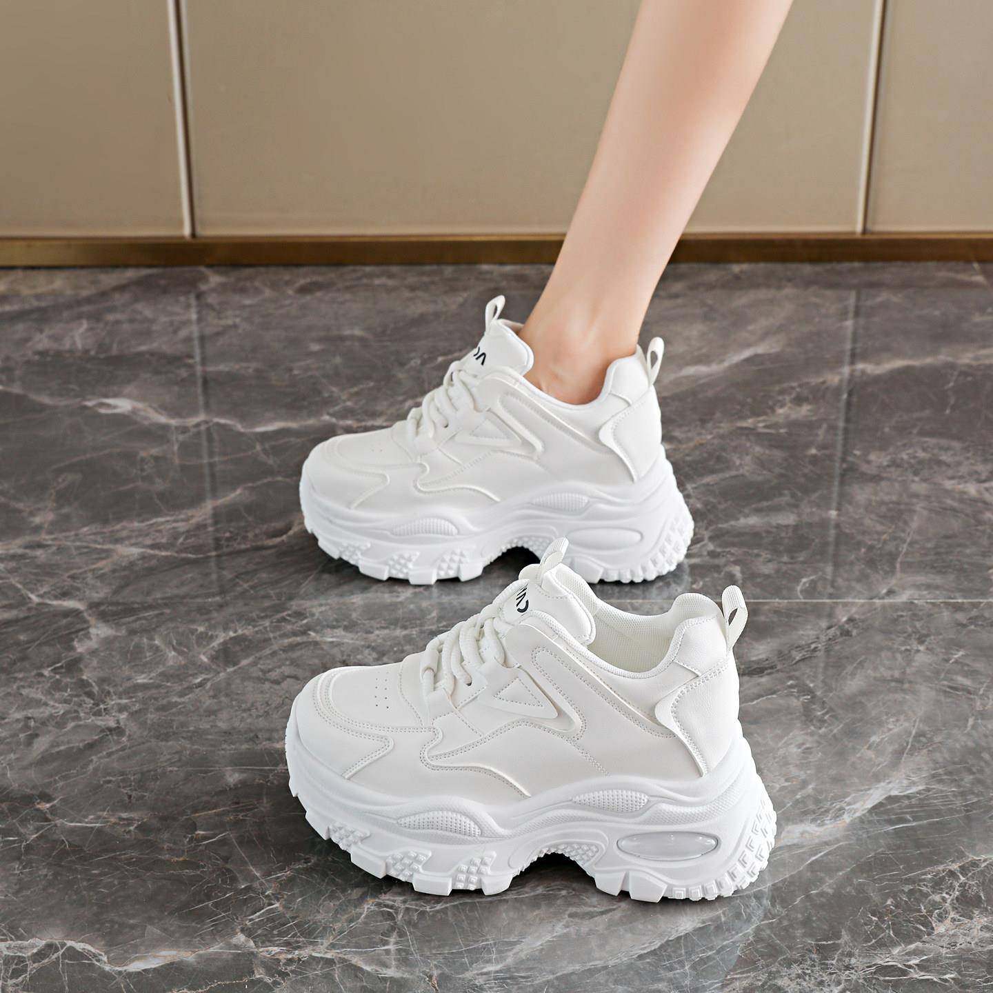春款小个子内增高女鞋10cm增高真皮小白鞋女厚底板鞋松糕休闲白鞋