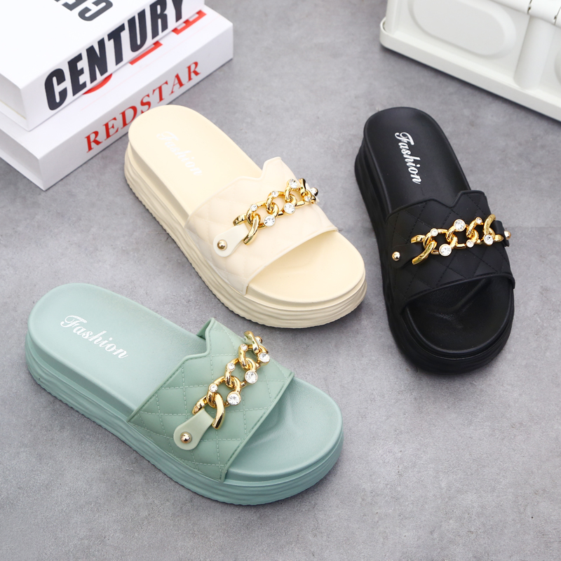 拖鞋女夏高跟厚底外穿时尚韩版休闲坡跟松糕底塑料居家凉拖鞋防滑