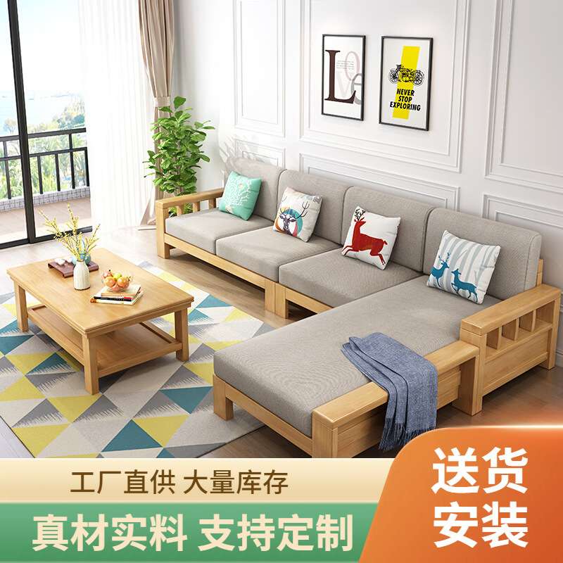 - 实木布艺沙发简约现代