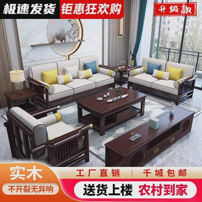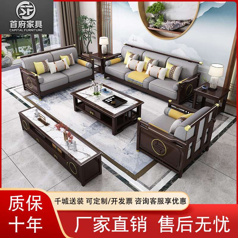 - 新中式实木布艺沙发组合