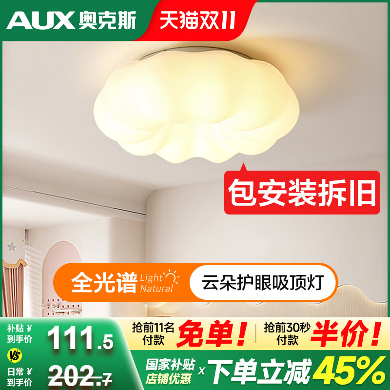 长虹儿童房护眼灯卧室灯全光谱吸顶灯奶油风主卧房间温馨云朵灯具