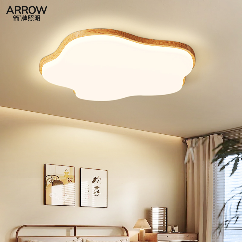箭牌原木色卧室灯中古风吸顶灯2025新款创意云朵灯家用主卧护眼灯
