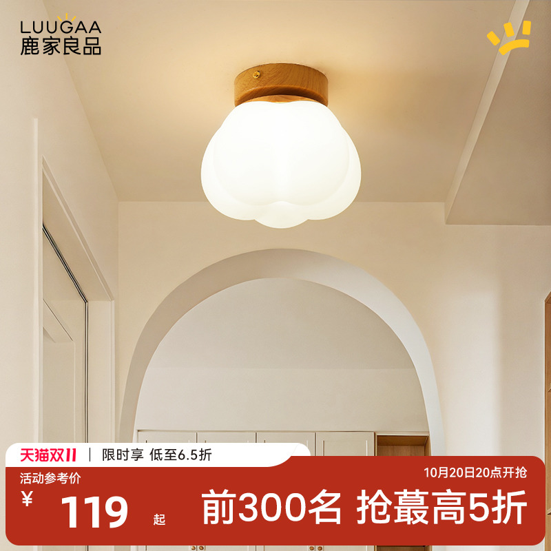 鹿家良品奶油棉花玄关云朵灯2025新款现代简约原木风过道吸顶灯具