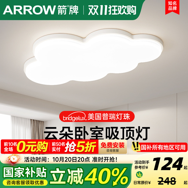 箭牌卧室灯现代简约书房灯护眼云朵灯具北欧奶油风儿童房间吸顶灯