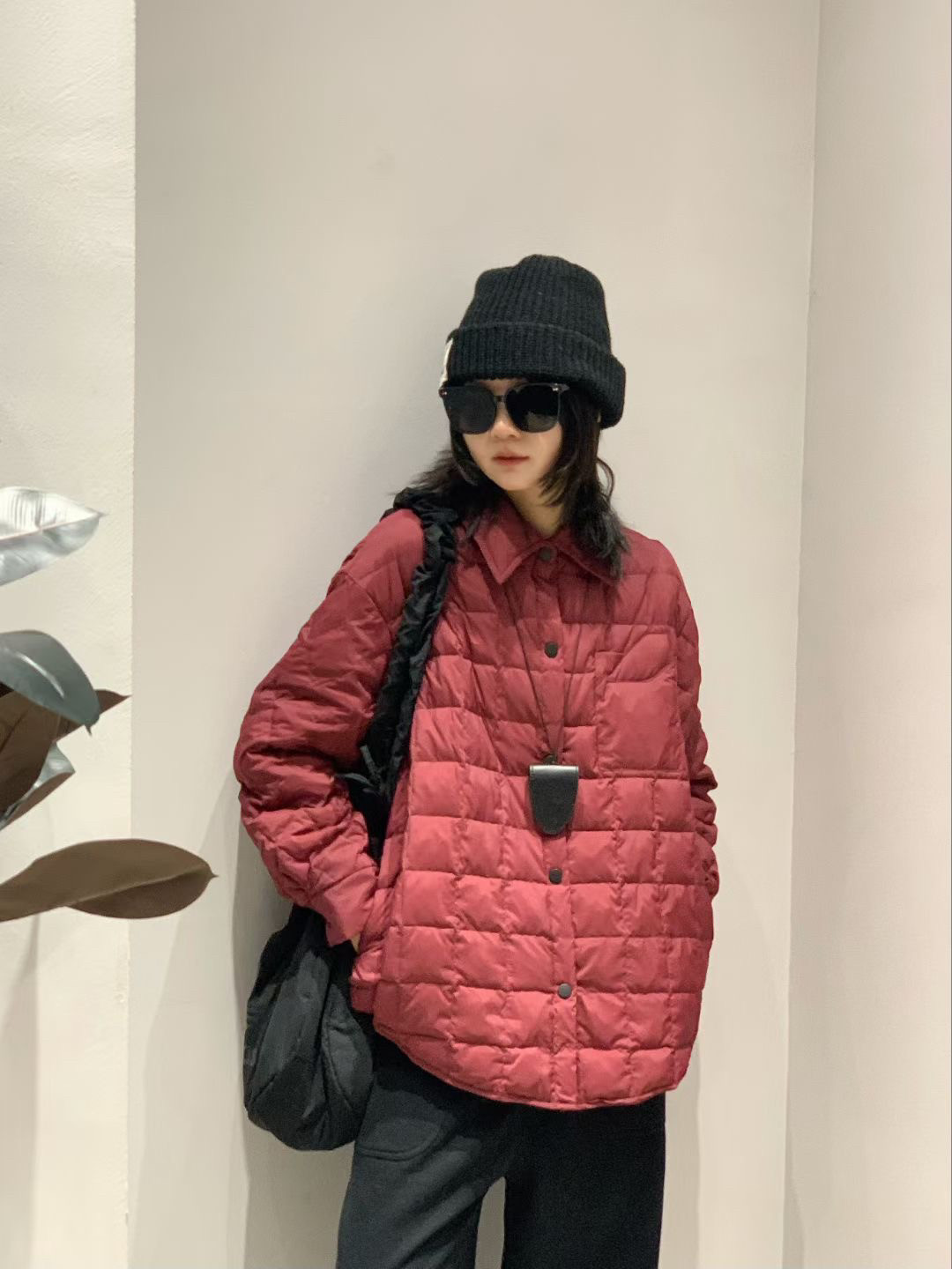 2025秋冬新款轻薄排骨衬衫领羽绒服女中长款宽松廓形90白鸭绒外套
