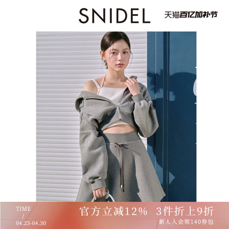 SNIDEL春夏款短款连帽卫衣外套A字半身短裙套装SWCO251135