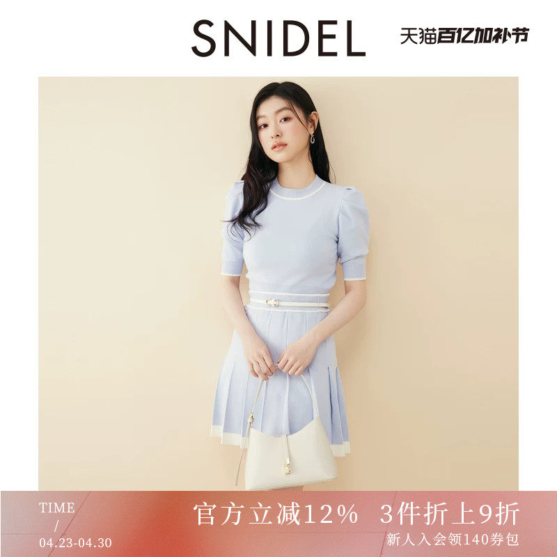 SNIDEL春夏款圆领中袖针织衫百褶半身短裙套装SWNO251139