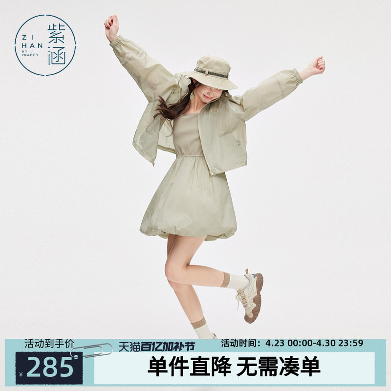 紫涵户外山系外套花苞连衣裙短裙套装春秋季连帽遮阳清新两件套潮