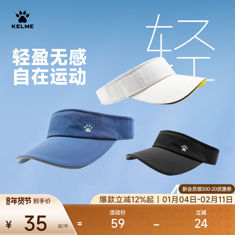 卡尔美跑步空顶帽防晒帽子男夏季棒球帽防紫外线太阳帽运动网球帽