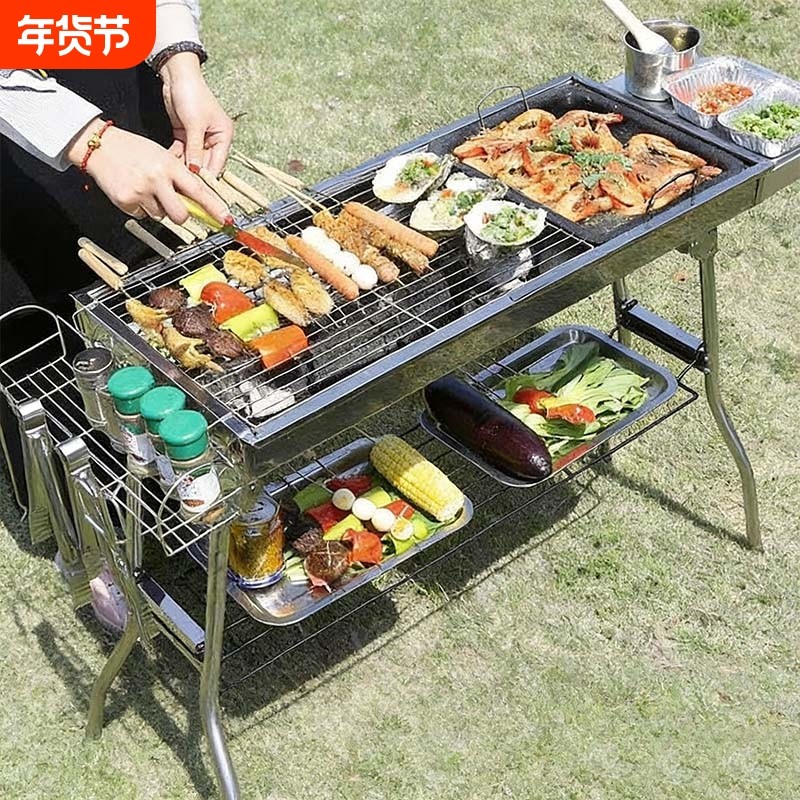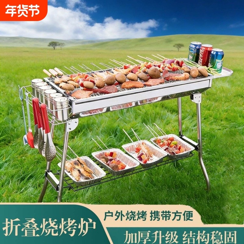 不锈钢烧烤架家用木炭n烧烤炉3-5人户外便携烤肉炉折叠式烧烤工具