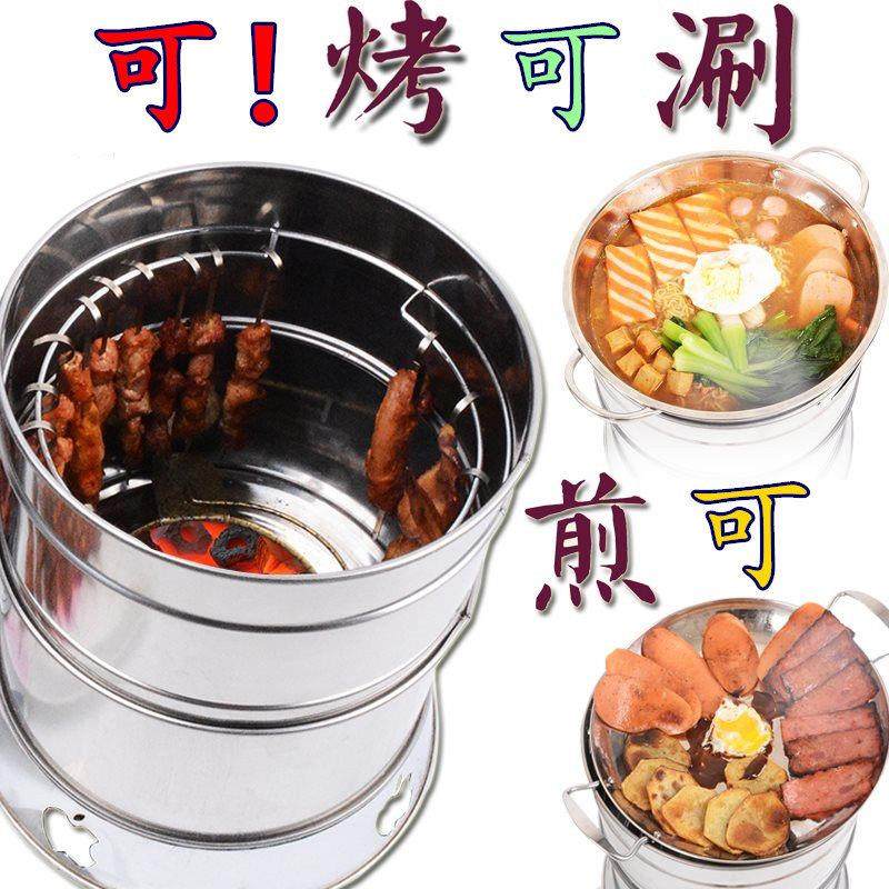 吊炉烧烤炉木炭户外火锅涮锅烧烤煎炸涮一体锅3-5人不锈钢多功能