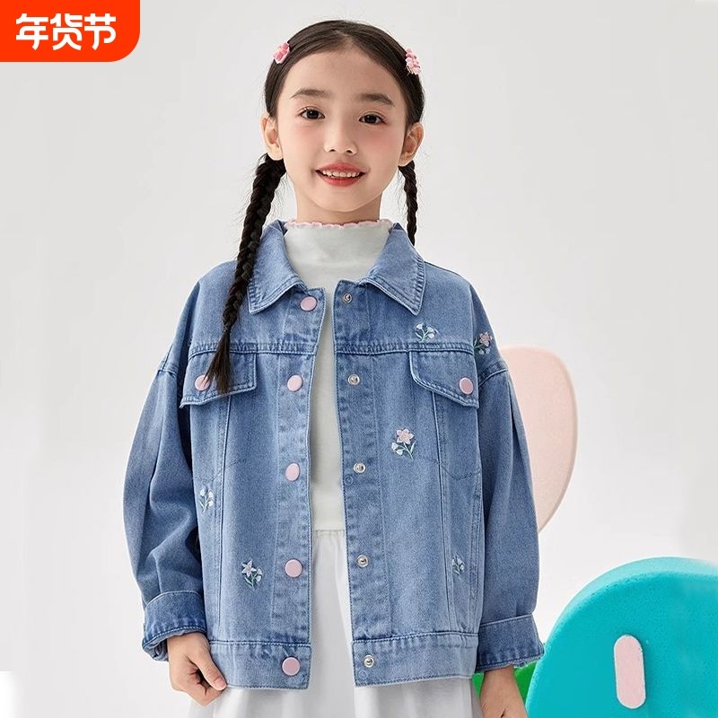女童外套春秋新款花朵刺绣可爱洋气牛仔衣中大童宽松时尚开衫童装
