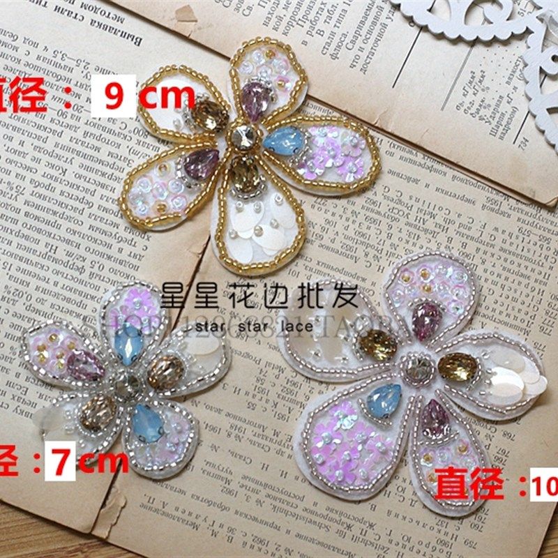 3件套亮片花朵补丁辅料DIY外套牛仔裤女包布贴服装水钻绣花贴片