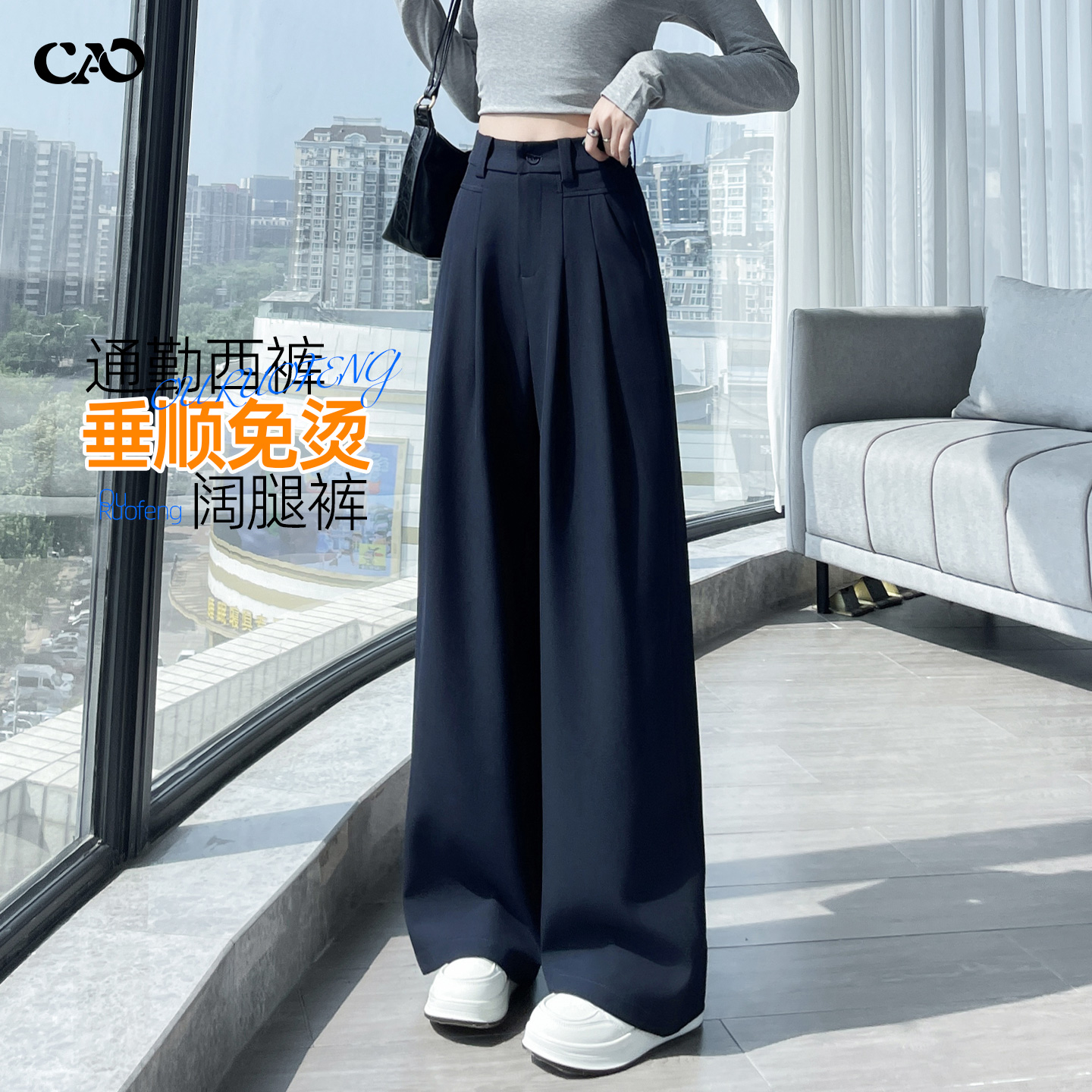 西装裤女春秋夏季2024新款高腰拖地垂感窄版阔腿裤宽松直筒休闲裤