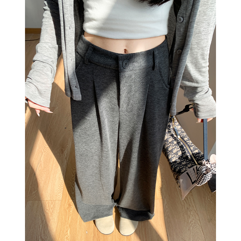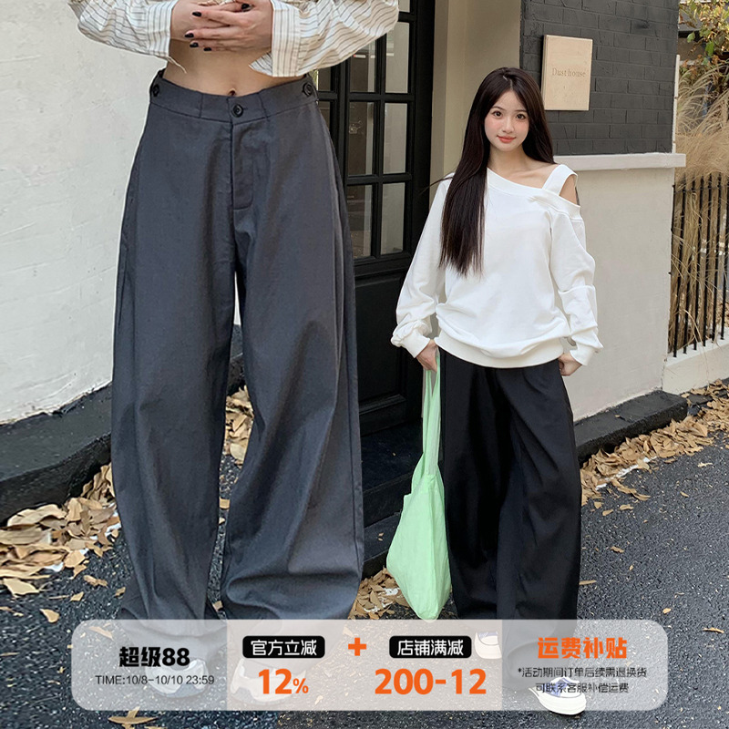 橘子树在哪儿灰色阔腿西装裤女春秋高级感垂感宽松休闲直筒拖地裤