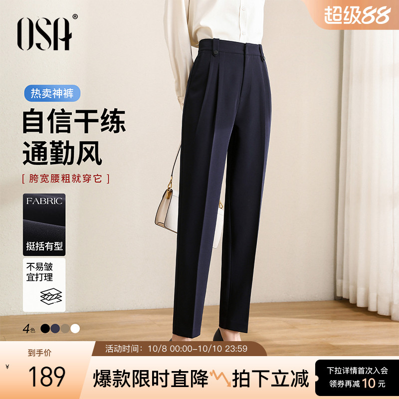 欧莎【热卖神裤】高腰OL职业烟管西装裤女春秋九分遮胯直筒休闲裤
