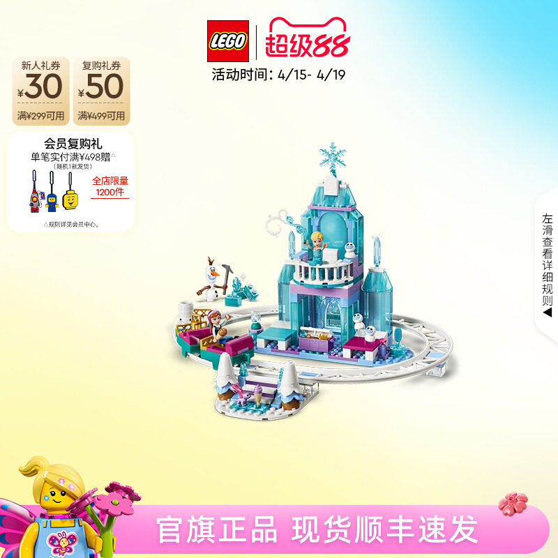 乐高官方旗舰店43281迪士尼艾莎的冰雪城堡雪上冒险积木儿童玩具