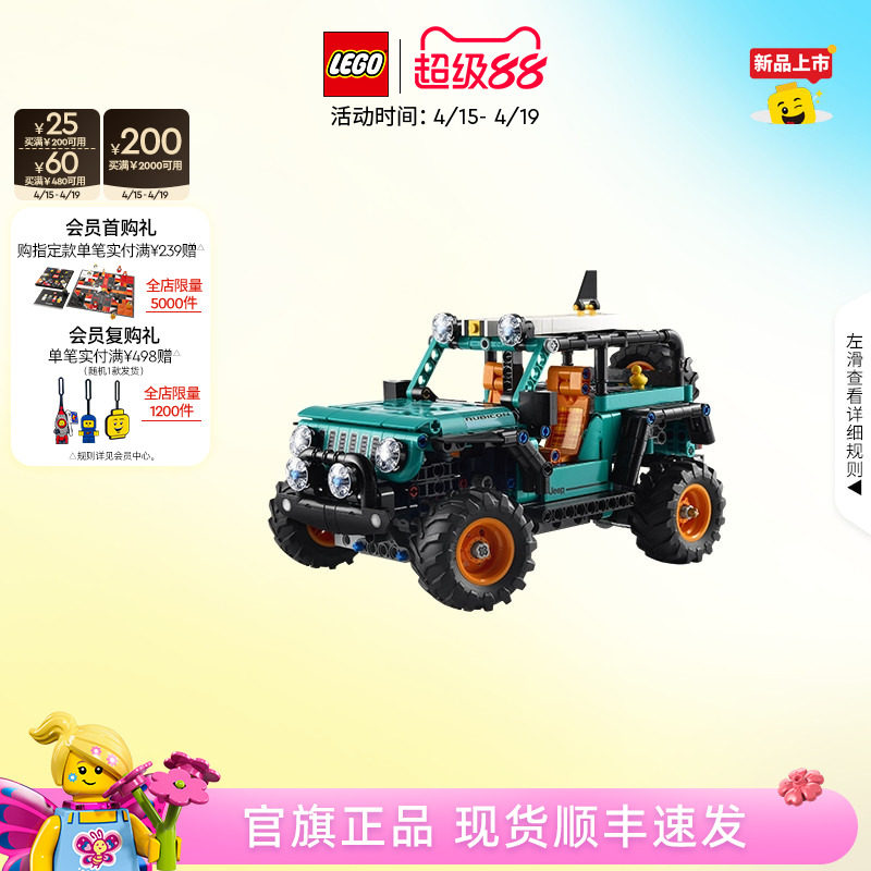 乐高官方旗舰店42227机械组吉普牧马人罗宾汉SUV积木儿童益智玩具