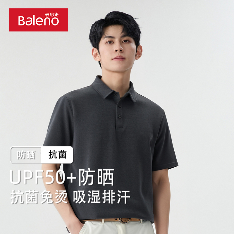 班尼路深色商务男士polo衫夏季凉感休闲翻领短袖中年抗菌防晒t恤A