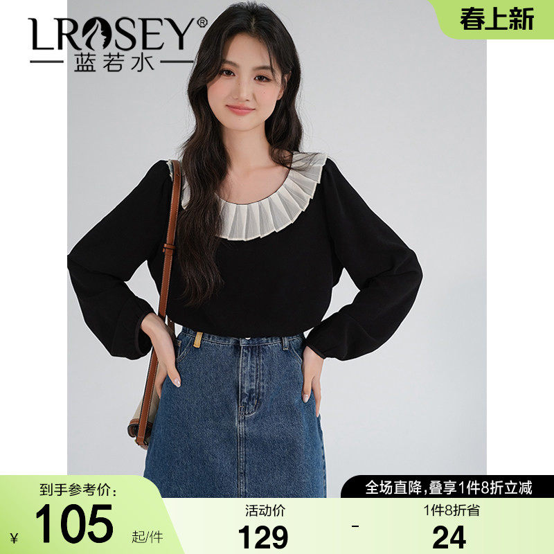 蓝若水大码女装蕾丝拼接减龄衬衫胖mm2026春装新款森系长袖衬衣