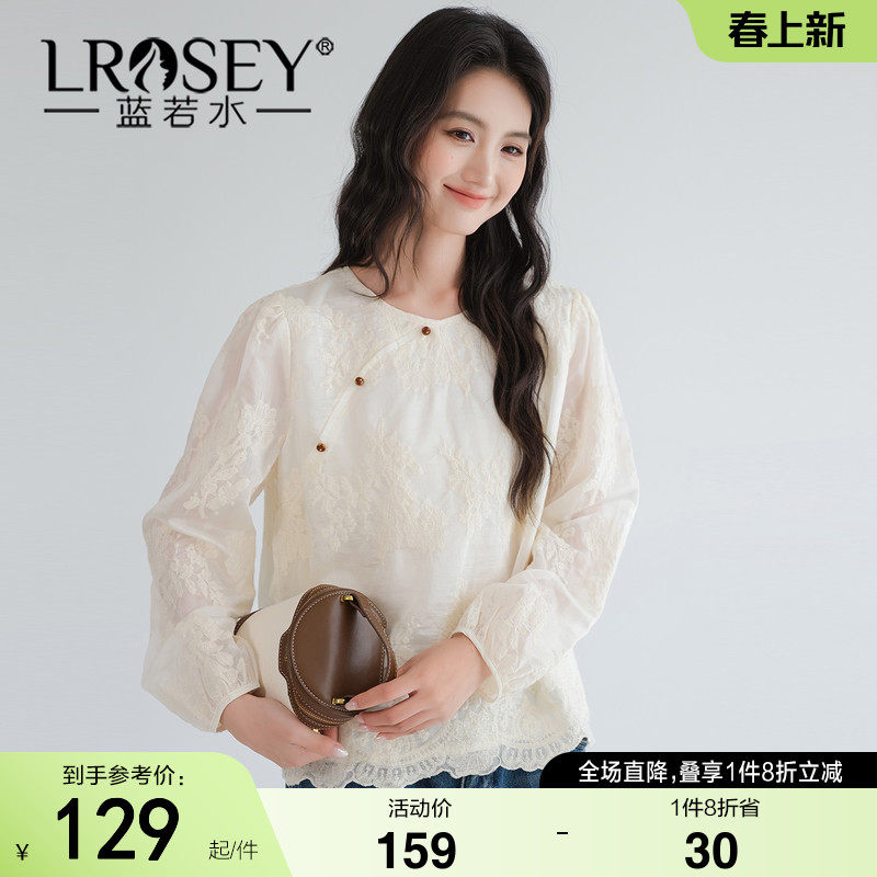 蓝若水大码女装新中式钩花蕾丝衫2026春装新款胖MM温柔风斜襟衬衫