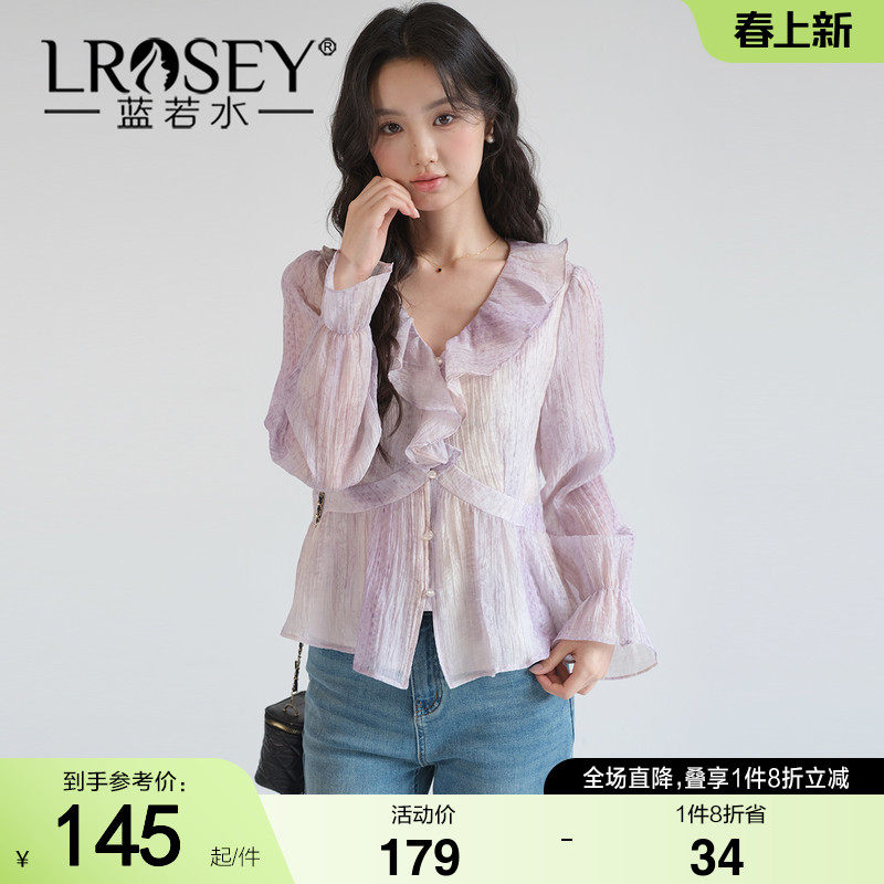 蓝若水大码女装2026春装新款荷叶边V领上衣胖MM显瘦复古通勤衬衫