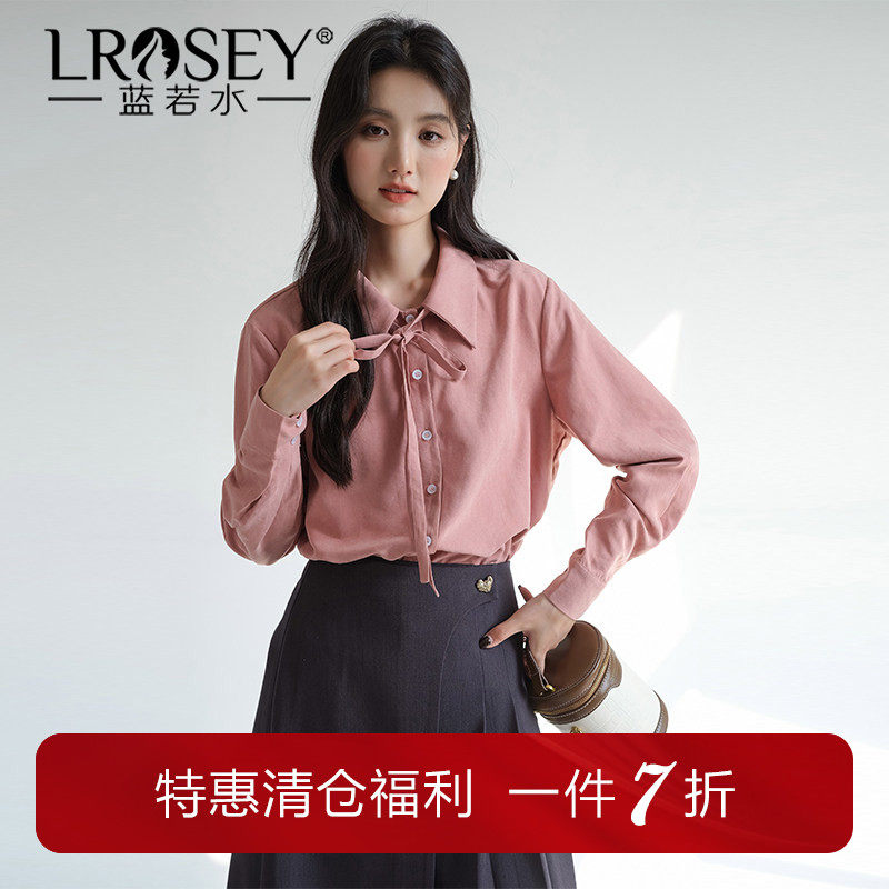 蓝若水大码女装亲肤舒适水洗衬衫胖mm2026春装新款系带翻领OL上衣