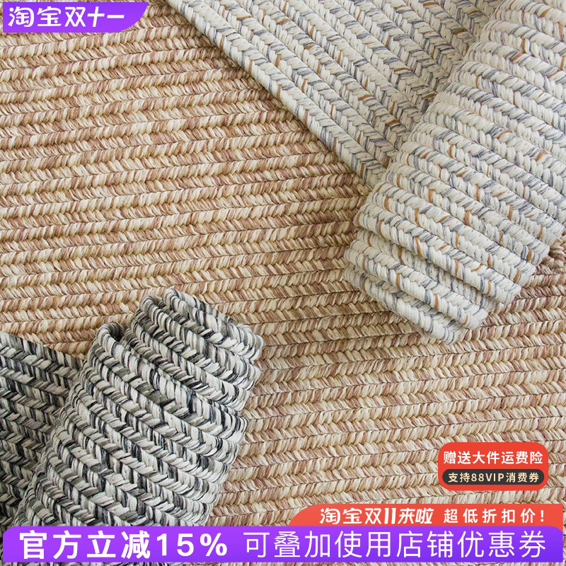 零胶水天然黄麻地毯客厅茶几卧室床边毯高级复古手工编织地毯定制