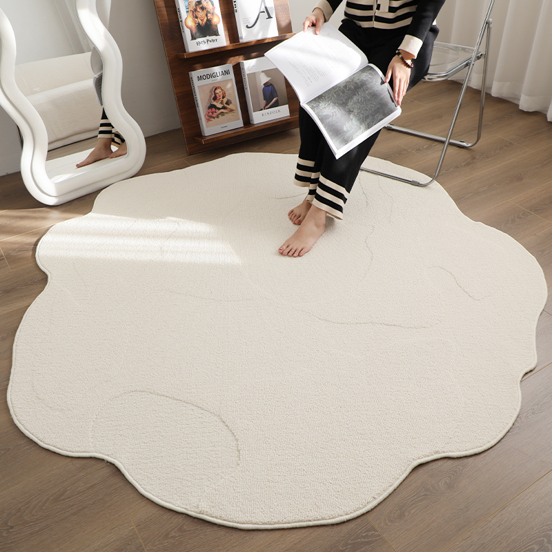 久忆奶油色硅藻丝异形浮雕地毯侘寂客厅茶几防水防污免洗卧室地垫