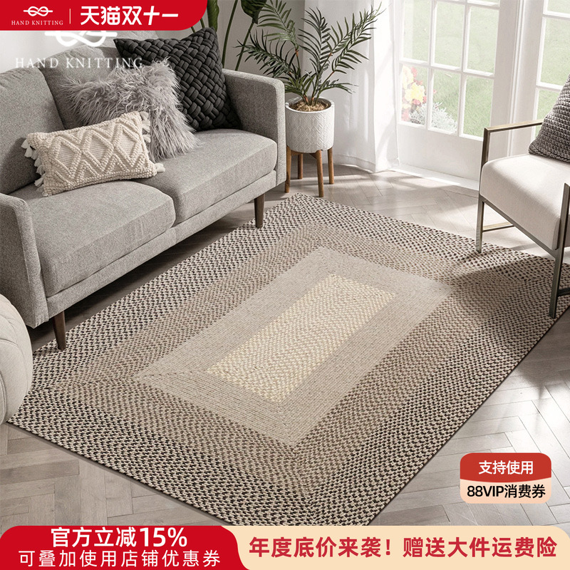 地毯客厅茶几手工编织家用卧室床边毯户外阳台地毯北欧风方形地垫