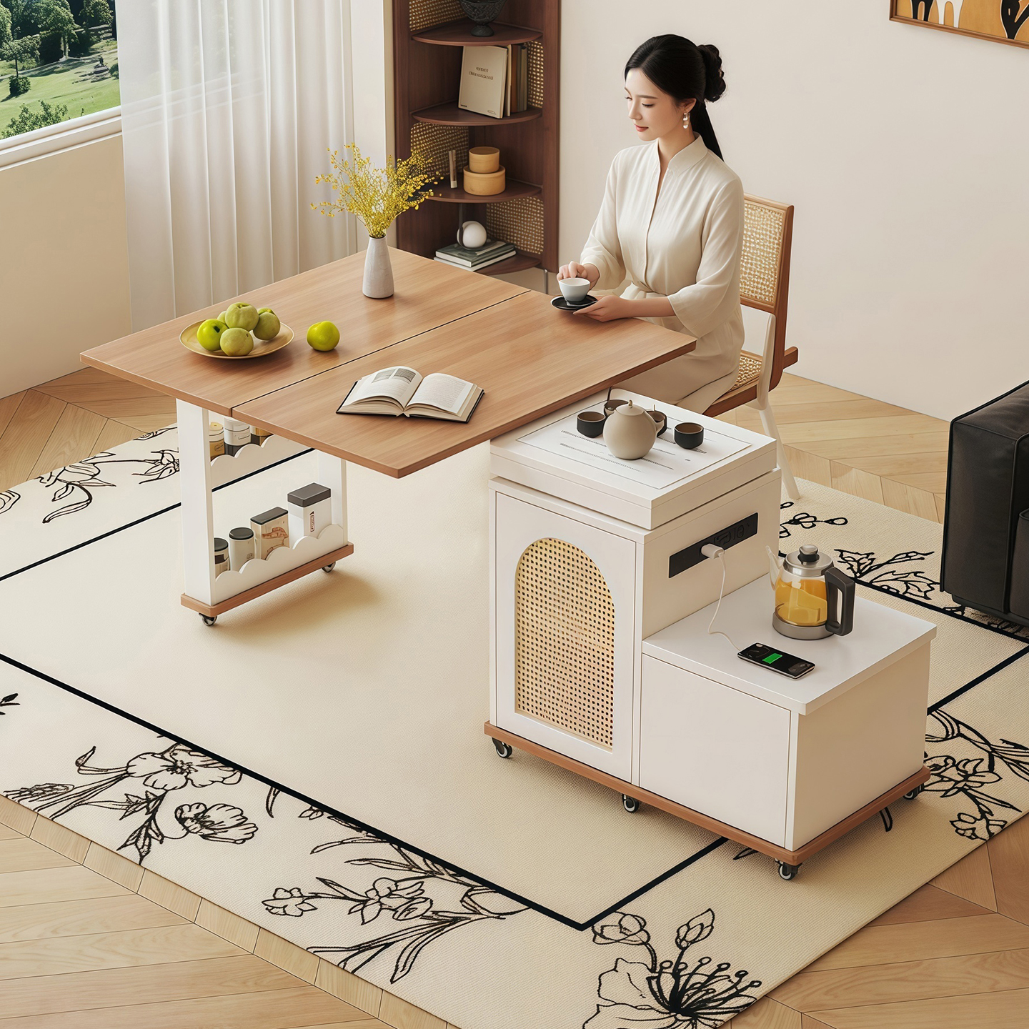 全友家居奶油风多功能升降茶几餐桌两用2025新款小户型客厅茶几桌