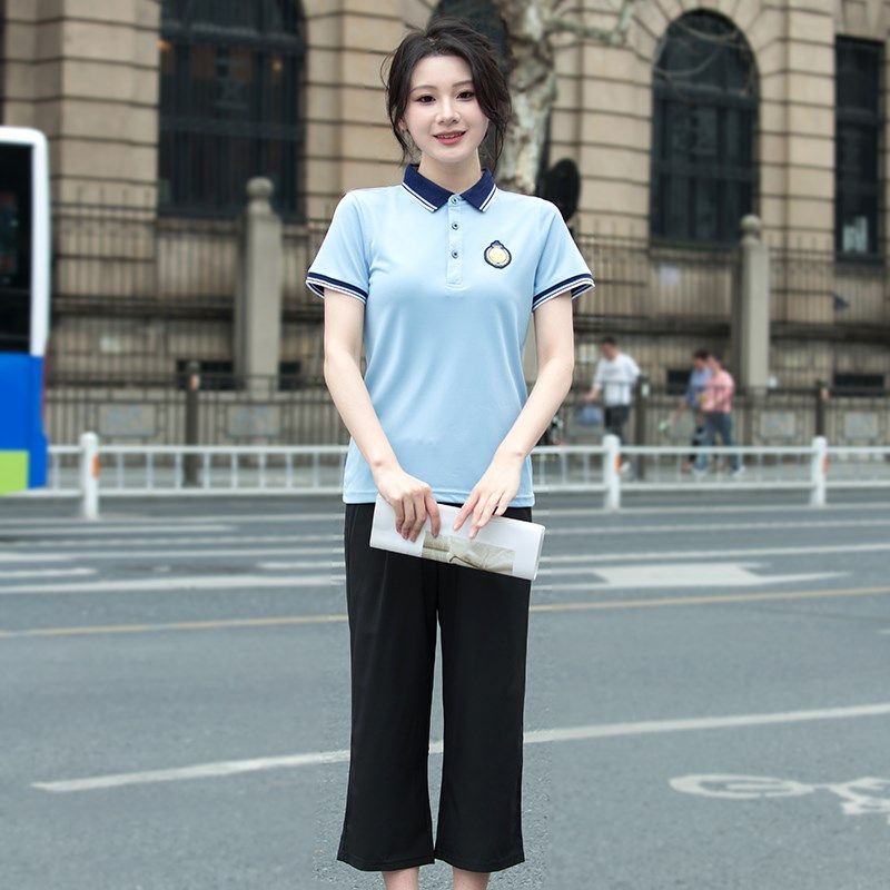 幼儿园教师园服短袖polo衫女夏装工作服翻领t恤衫服务员工衣定制