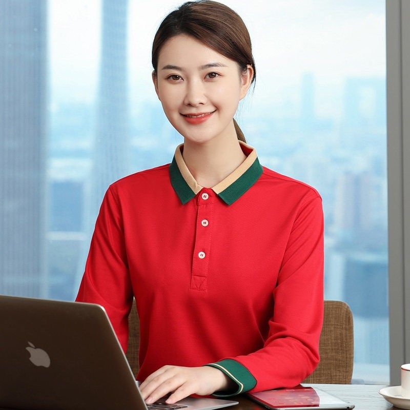 幼儿园教师园服长袖polo衫女秋装工作服翻领t恤衫服务员工衣定制