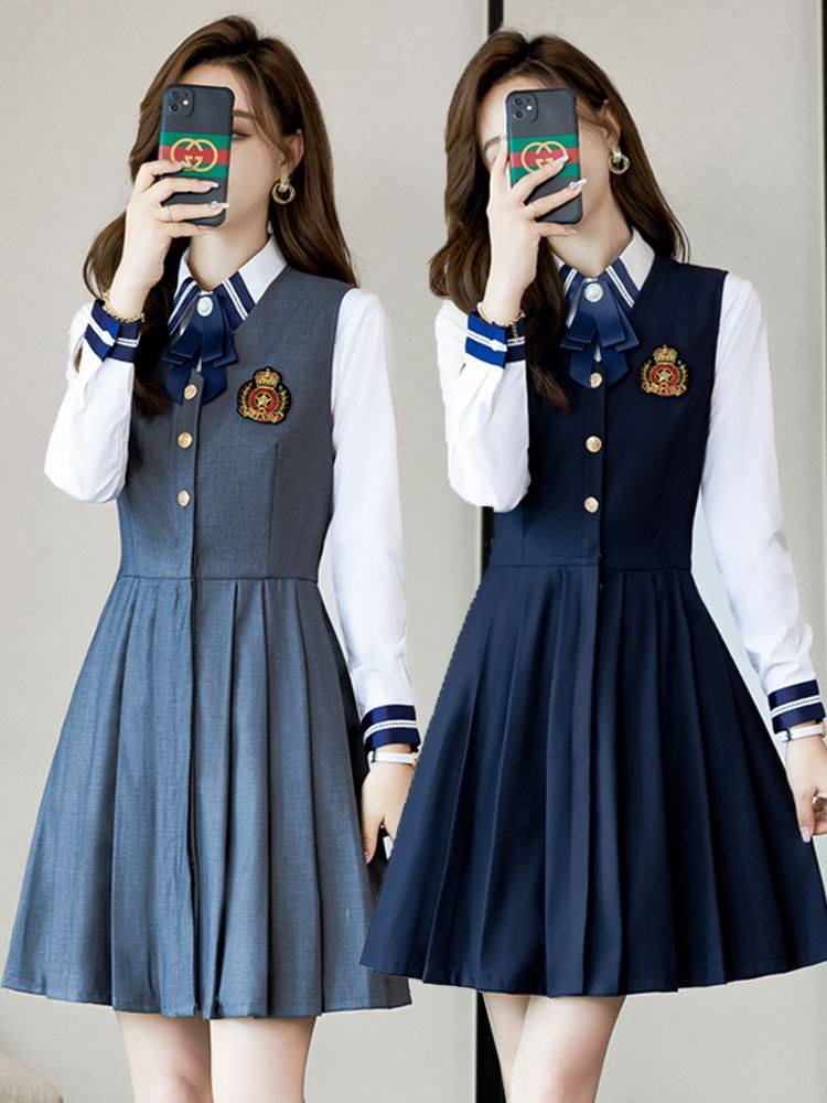 秋冬幼儿园教师园服学院风职业西装连衣裙套装学生演讲比赛工作服