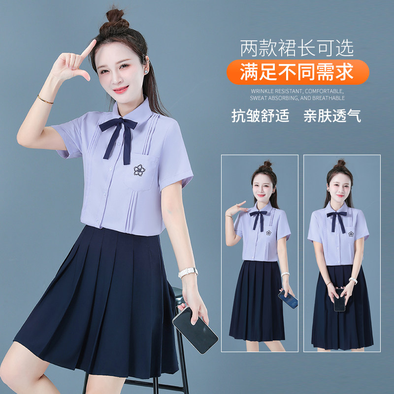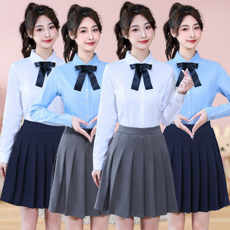 幼儿园教师园服白衬衫套装裙春秋装长袖职业老师工作服幼师服百褶