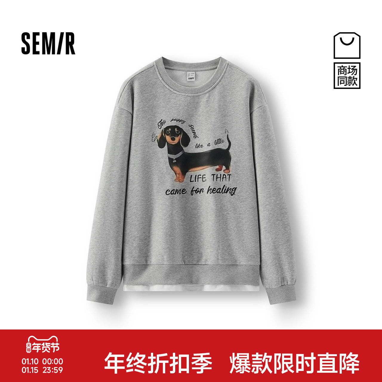 商场同款|森马卫衣女冬季中长款抓绒假两件小狗2025新款潮流衣服