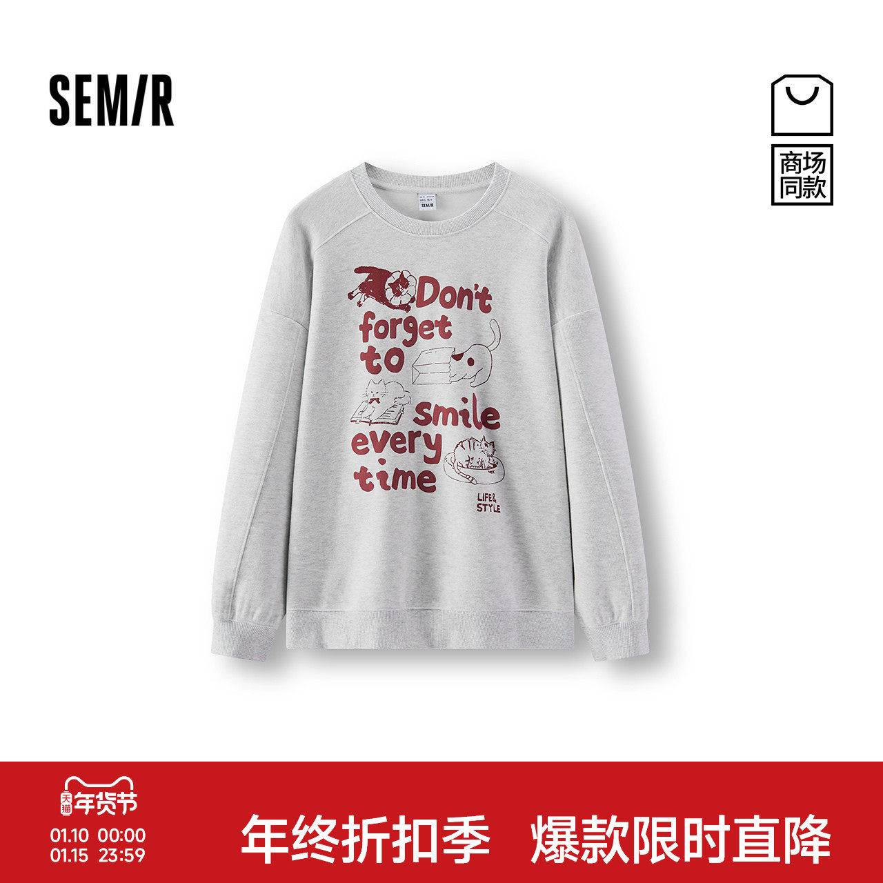 商场同款|森马卫衣女冬中长款oversize猫咪2025新款休闲趣味衣服