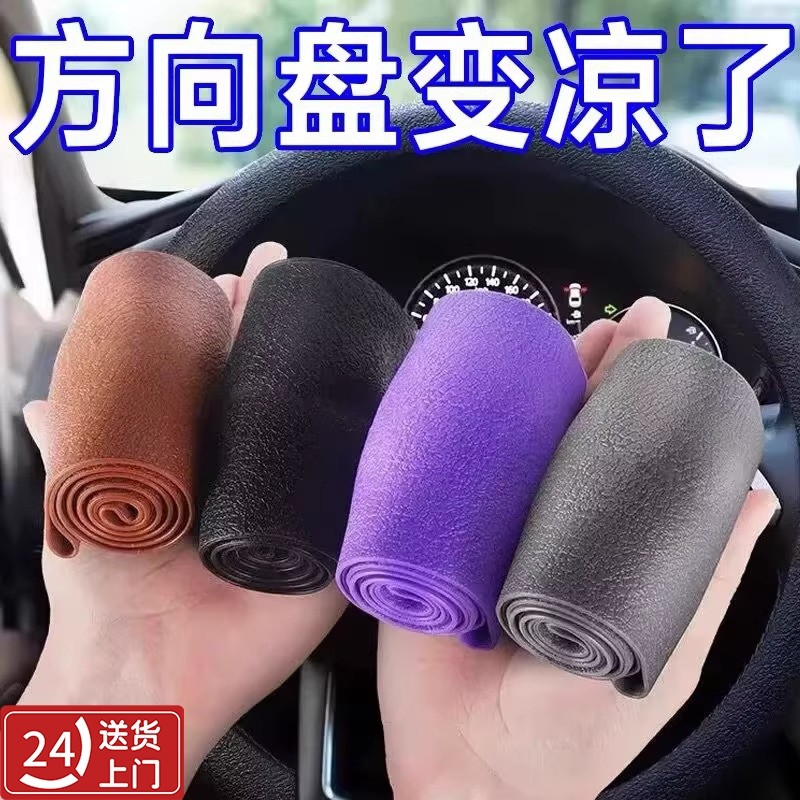 麂皮绒汽车方向盘套四季款通用型绒布车把套新款超薄防滑吸汗透气