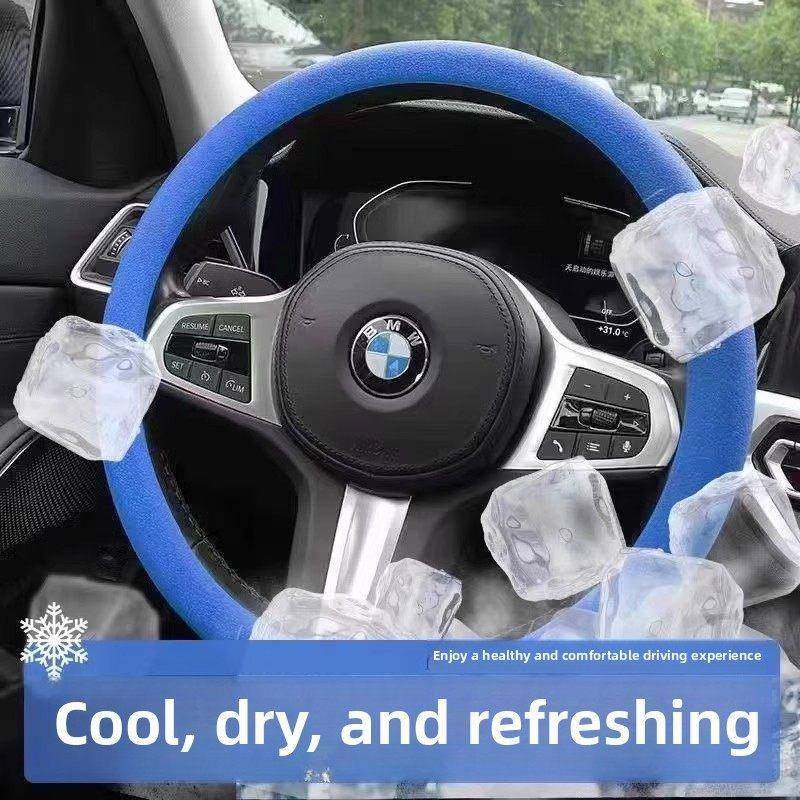 汽车夏季冰感超薄方向盘套防滑防汗矽胶纹四季通用车把套男女柔软