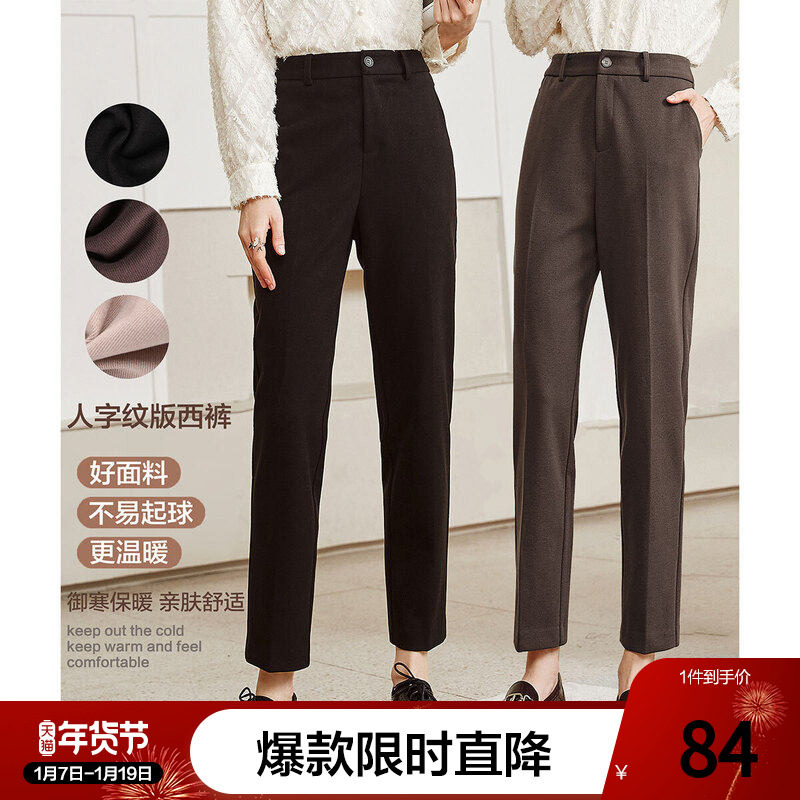 小直筒裤女九分2025秋冬新款高腰显瘦厚款薄绒休闲百搭烟管西装裤